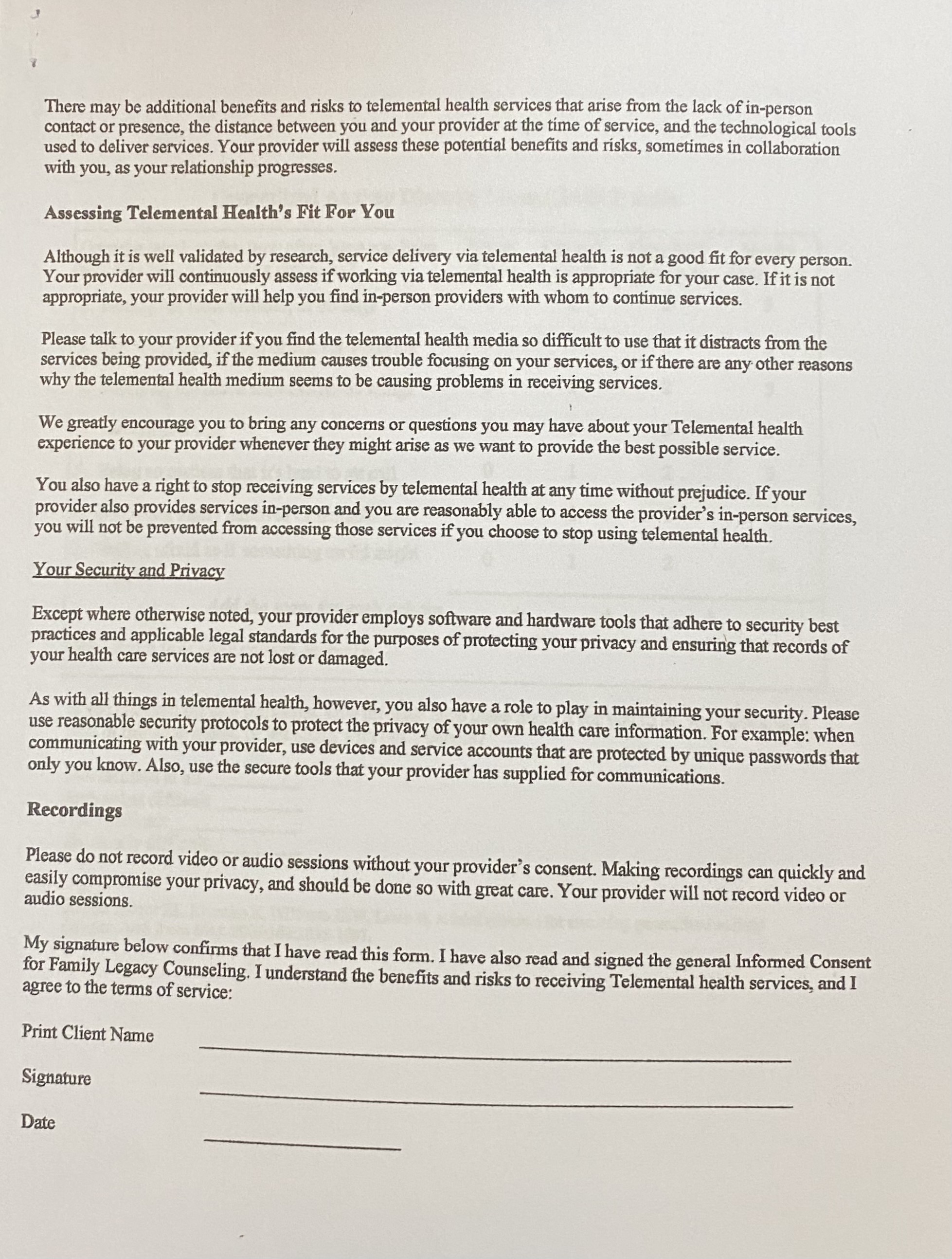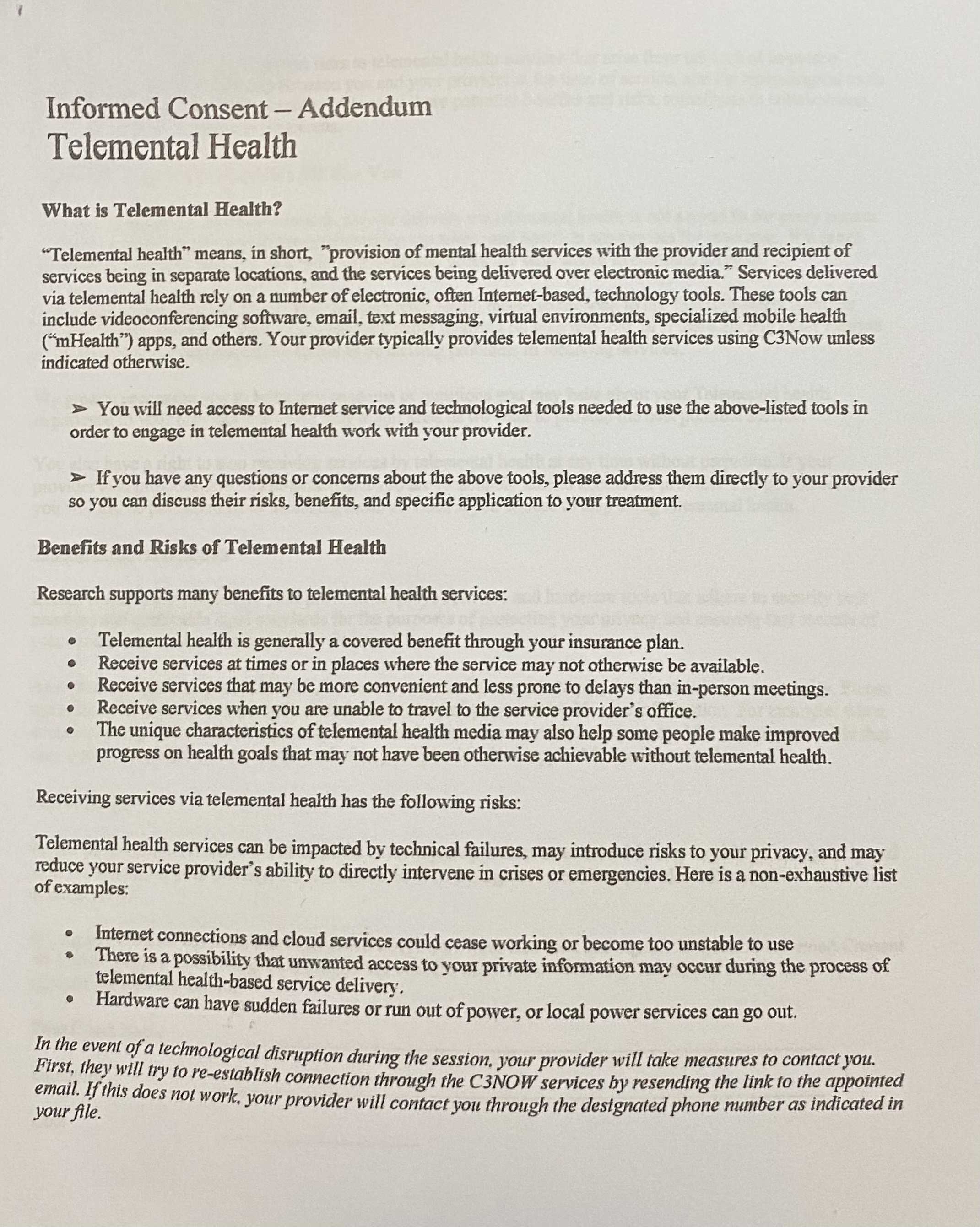 Telemental Health Informed Consent Addendum (continued)
