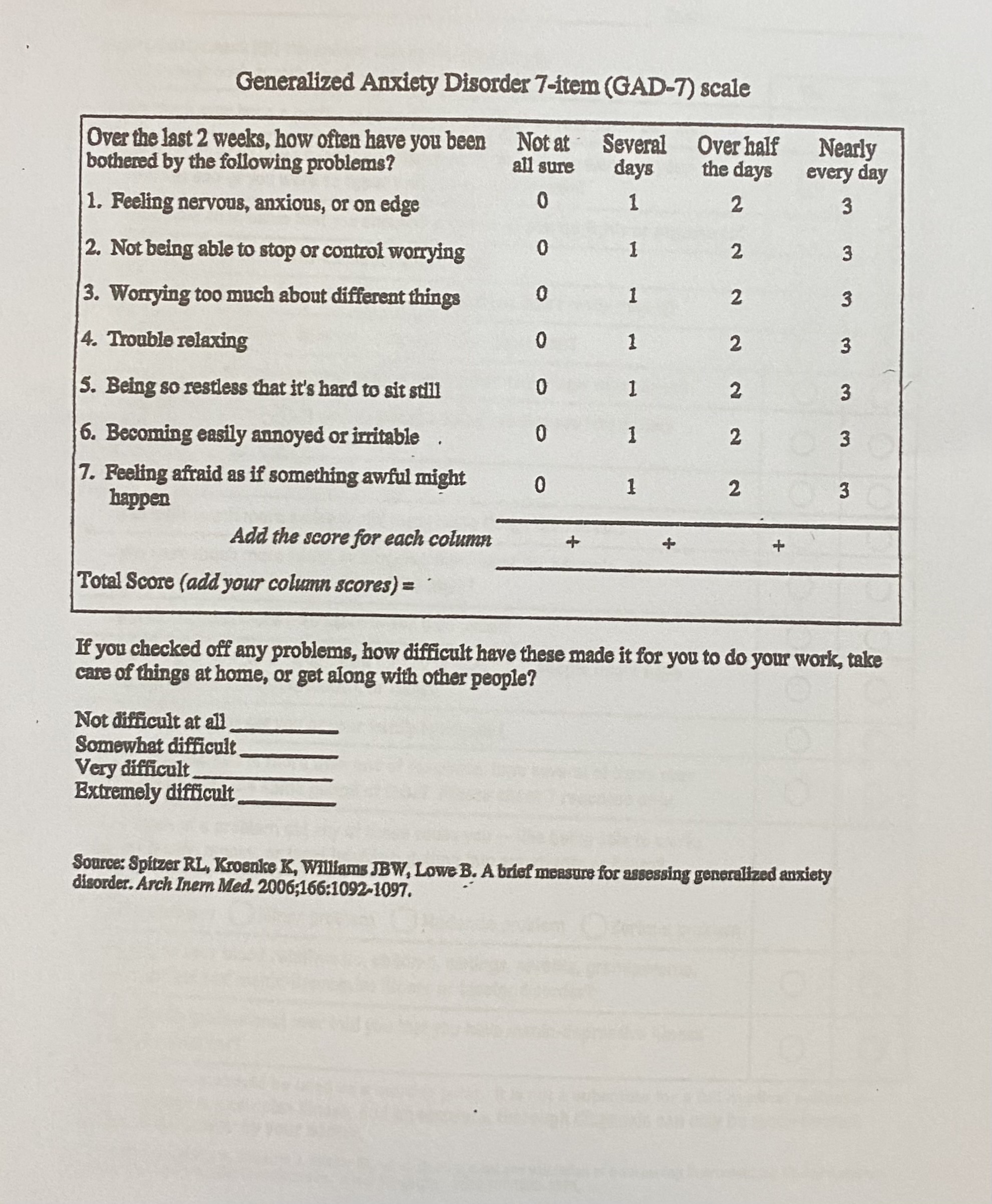 Generalized Anxiety Disorder 7-item (GAD-7) scale